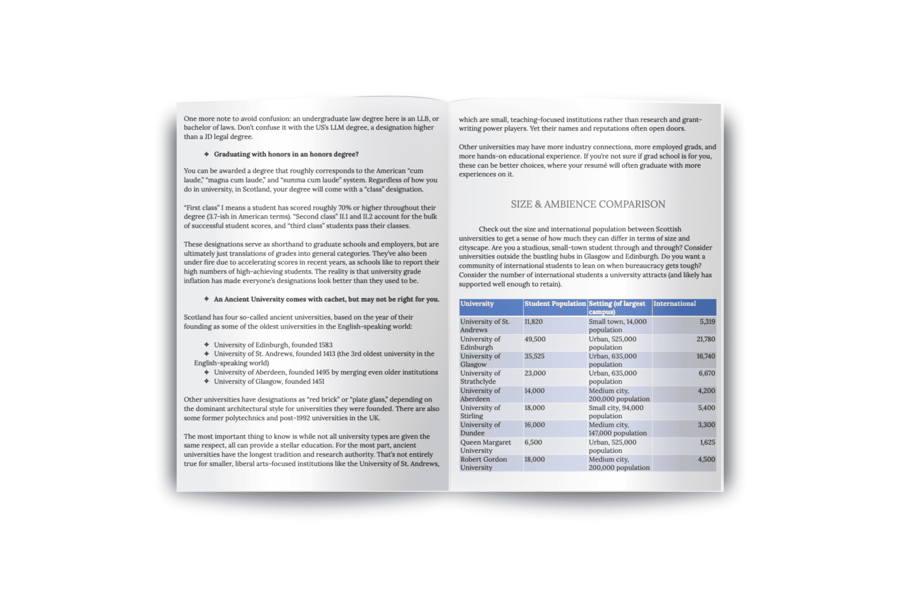 The Universities of Scotland guidebook includes:
